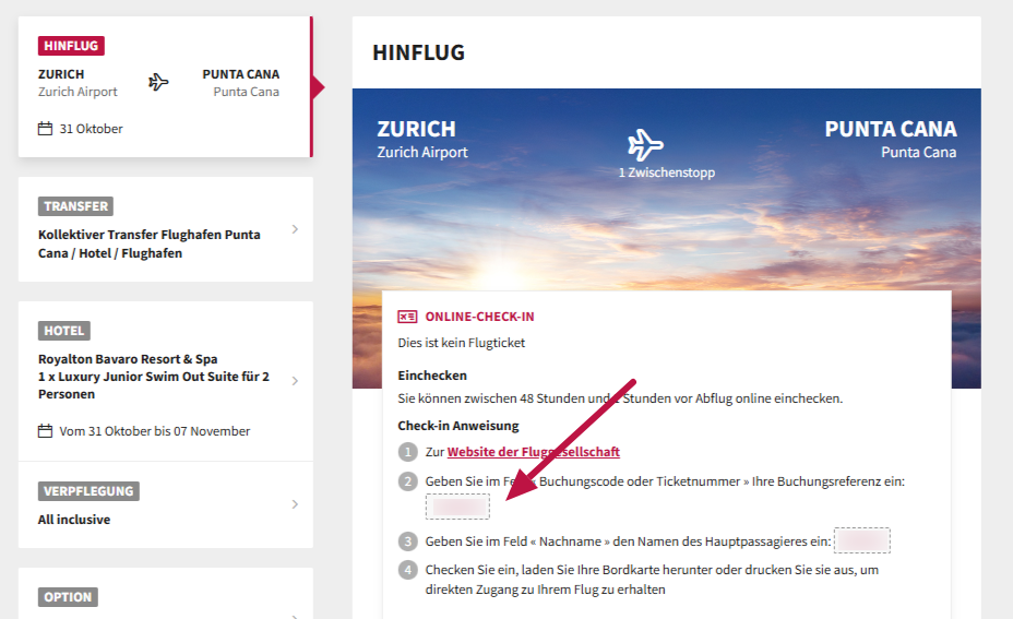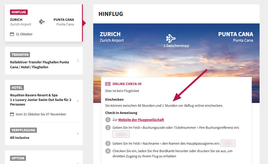 | Hinweis: Wenn diese Informationen nicht verfügbar sind, bedeutet dies, dass Sie mit einem Sonderflug eines Reiseveranstalters reisen. In diesem Fall ist ein Online-Check-in nicht möglich.