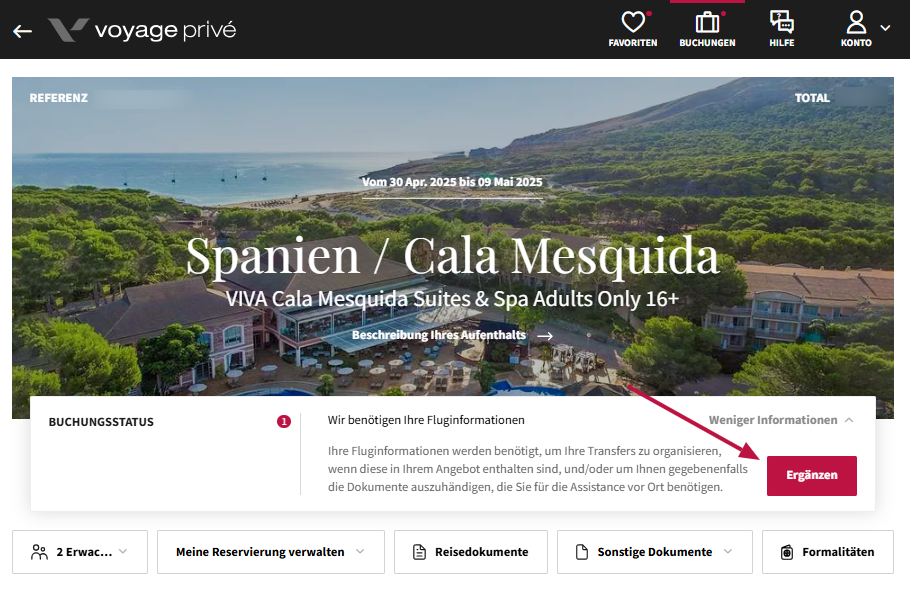 Wenn Sie Ihre Flüge über Voyage Privé gebucht haben